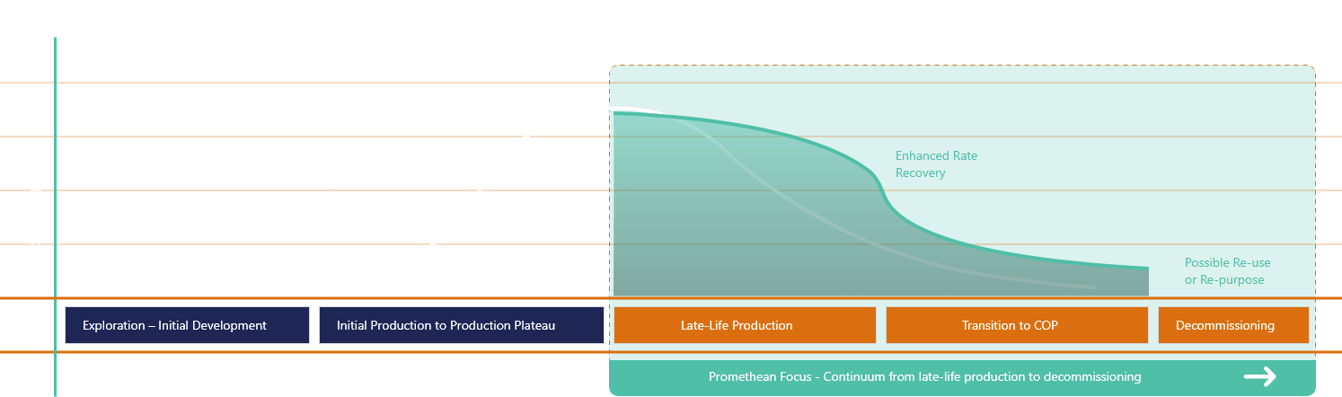 We see potential in what others discard. Prioritizing safety and efficiency, Promethean acts as a steward from the production to the COP to the decommissioning phase of an asset's life. We founded Promethean Energy to provide creative, responsible solutions for mature oil and gas assets because we believe it takes more than technical expertise. We focus on precision, safety, and strategic insight to maximize every asset we manage while fulfilling the highest environmental and regulatory standards.